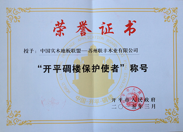 聯(lián)豐地板被授予“開平碉樓保護(hù)使者”榮譽(yù)稱號