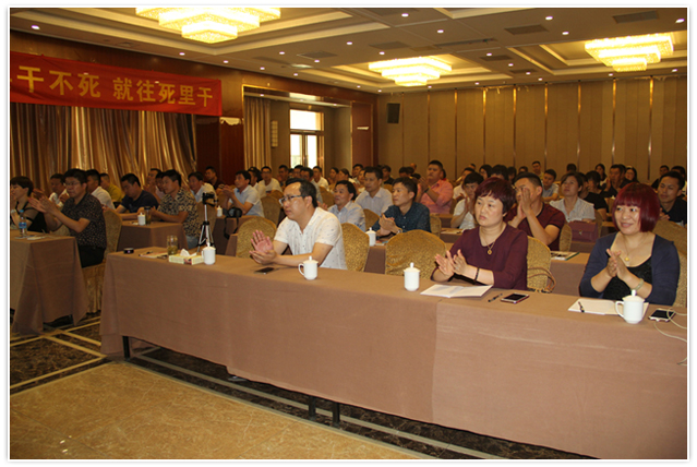 市場(chǎng)部部長(zhǎng)路世培對(duì)“巔峰大惠戰(zhàn)”——榮耀32年廠慶大促活動(dòng)方案進(jìn)行了解讀,運(yùn)用“345黃金法則”講解了客戶邀約的渠道和方法,針對(duì)于本次活動(dòng)的終端說辭,終端表現(xiàn)等作了詳細(xì)闡述,讓大家更加有的放矢執(zhí)行。