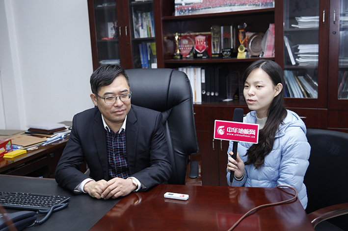 聯(lián)豐地板總經(jīng)理李玉明與中華地板網(wǎng)記者合影