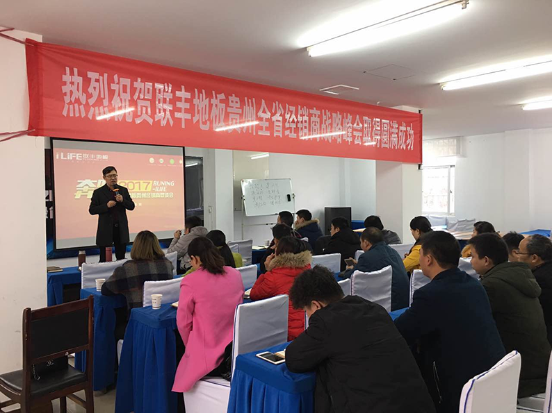 雄雞報(bào)春迎來新年新風(fēng),元月4—5日,奔跑2017——聯(lián)豐地板貴州經(jīng)銷商懇談會(huì)在貴陽隆重召開,蘇州聯(lián)豐木業(yè)有限公司總經(jīng)理李玉明、聯(lián)豐木業(yè)貴州營銷中心總經(jīng)理梁碩以及來自于全省30多個(gè)市縣的經(jīng)銷商參加了本次峰會(huì)。2013年成立至今僅四年的貴州營銷中心已經(jīng)成為聯(lián)豐品牌強(qiáng)勢(shì)挺進(jìn)大西南,重磅打造橋頭堡的核心支點(diǎn)之一。