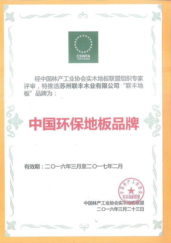 其實,去年江蘇就啟動“263專項行動”,打響碧水藍天保衛(wèi)戰(zhàn),作為重點企業(yè)的聯(lián)豐,已經(jīng)通過了嚴格審核。正是因為我們牢記環(huán)保責任,重視技術(shù)投入,制造工藝升級,使得聯(lián)豐贏得了社會各界的肯定,中國環(huán)境標志優(yōu)秀企業(yè)、中國環(huán)保地板品牌、ISO14001國際環(huán)境管理體系認證,中國環(huán)境標志產(chǎn)品認證等榮譽就是最好的褒獎。特別是十環(huán)優(yōu)秀企業(yè),作為目前國內(nèi)最高標準的綠色環(huán)保認證,國家明文規(guī)定只有通過“十環(huán)認證”的產(chǎn)品才能稱為“綠色產(chǎn)品”,全國只有四千多家企業(yè)榮譽此譽,聯(lián)豐脫穎而出更代表著國家對聯(lián)豐在綠色環(huán)保方面的最大肯定。