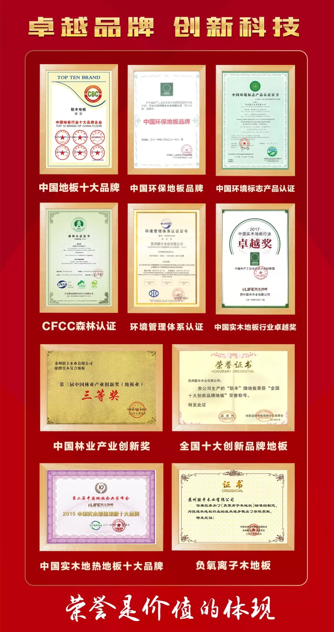 2018年,是聯(lián)豐躍馬揚(yáng)鞭,不斷奮進(jìn)的一年。從多年蟬聯(lián)中國地板十大品牌、中國地板影響力十大品牌、中國地板十佳品牌(地暖類),到中國地板質(zhì)量售后服務(wù)金獎(jiǎng)、地板類第一個(gè)中國森林認(rèn)證CFCC-COC證書,再到榮膺“改革開放40年實(shí)木地板業(yè)風(fēng)云人物”.……風(fēng)水生起逐浪高,聯(lián)豐的品牌影響力不斷增強(qiáng)。