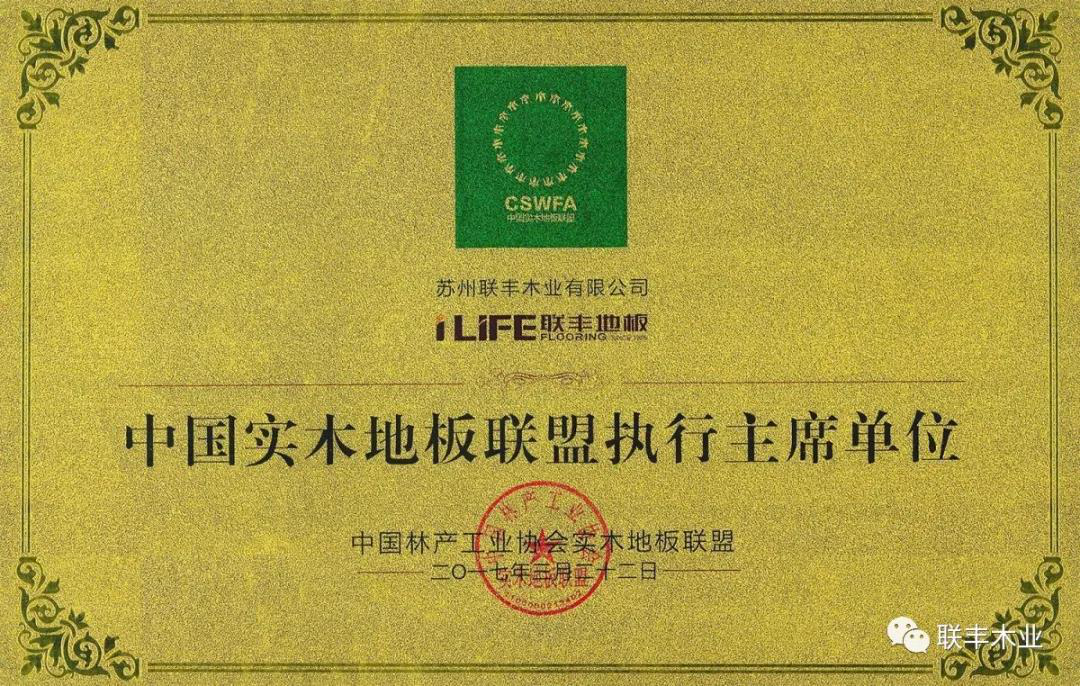 值315國際消費者權(quán)益保護(hù)日前夕,聯(lián)豐地板被中國林產(chǎn)工業(yè)協(xié)會實木地板聯(lián)盟授予“強國品牌”,榮譽的獲得為堅持創(chuàng)新不斷努力的聯(lián)豐再添一份榮耀與激勵。
