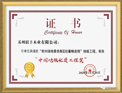 2018年,中華人民共和國財政部、生態(tài)環(huán)境部對“環(huán)境標(biāo)志產(chǎn)品政府采購清單”進行了調(diào)整并正式對外公布,聯(lián)豐再次入圍政府采購環(huán)保清單,成為行業(yè)標(biāo)桿力量!此次,憑借承接的“常州綠地香奈高層批量精裝修”地板工程,榮獲年度“中國地板優(yōu)質(zhì)工程獎“榮譽,彰顯優(yōu)秀基因可傳承。