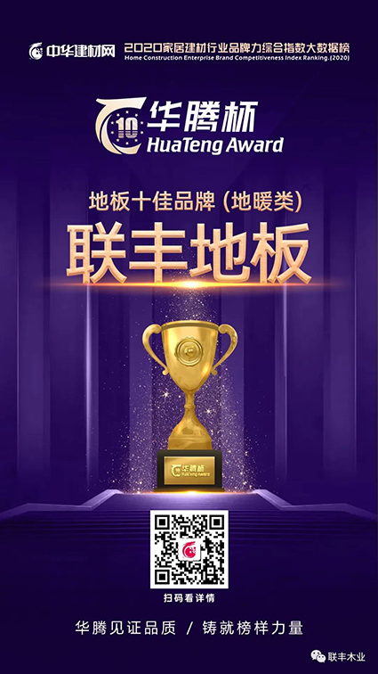日前,備受業(yè)界矚目的由家居建材行業(yè)綜合門戶“中華建材網(wǎng)”,依托自身“大數(shù)據(jù)研究院”和“云計算系統(tǒng)”,傾力打造的“華騰杯”中國地板十佳品牌、地板十大品牌網(wǎng)絡(luò)評選活動重磅揭曉,聯(lián)豐地板于強(qiáng)手如林中脫穎而出,連續(xù)四年榮耀加持“中國地板十佳品牌(地暖類),連續(xù)十年榮獲“中國地板品牌價值十大品牌”,不斷見證著品牌發(fā)展的生機(jī)與活力。