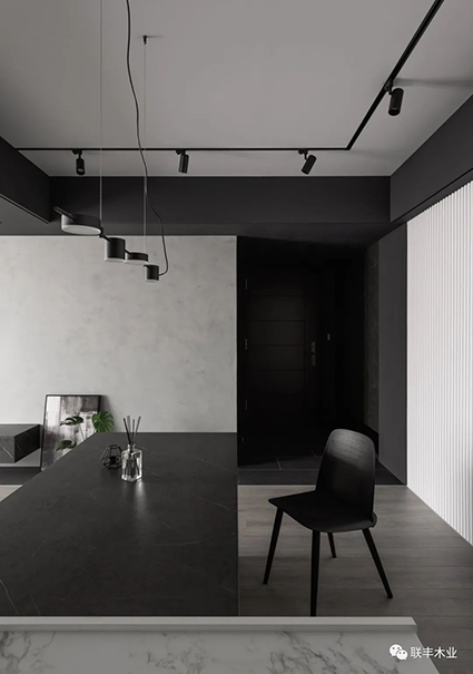 將兩者巧妙地碰撞、交融在一起,會產(chǎn)生一種微妙的化學(xué)反應(yīng),它們讓一切簡單純粹、神秘優(yōu)雅都水到渠成,既保留了干凈簡約的視感體驗(yàn),又能與其他色彩和材質(zhì)進(jìn)行搭配,營造出時(shí)尚輕奢的氣質(zhì)空間。