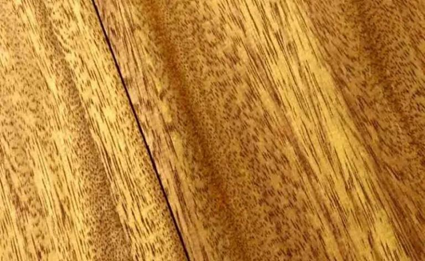 圓盤(pán)豆心材與邊材區(qū)分明顯,心材金黃褐色略帶青色調(diào),久則轉(zhuǎn)為紅棕色,具深色細(xì)條紋,邊材為淺粉紅色,木材干燥后呈黃褐色或深褐色,古樸大方。圓盤(pán)豆地板色調(diào)一般較深、給人一種古典美的感覺(jué),非常符合東方審美。