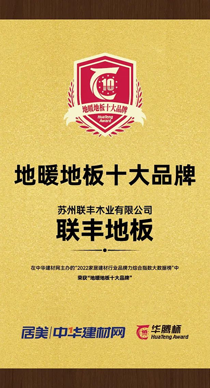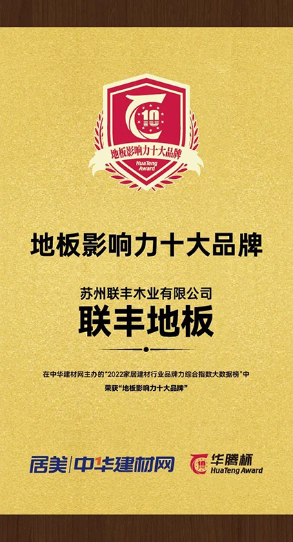 又是一年金秋月,又到碩果累累時。由中國家居建材行業(yè)綜合門戶|中華建材網(wǎng)發(fā)起并主辦的“華騰杯”——2022家居建材行業(yè)品牌力綜合指數(shù)大數(shù)據(jù)榜榮耀開啟,家居領(lǐng)袖齊聚云端,共襄行業(yè)年度盛宴。38年榮耀品牌——聯(lián)豐地板品牌力綜合指數(shù)居高不下,成功斬獲“地板十佳品牌”、“地板影響力十大品牌”、“地暖地板十大品牌”。