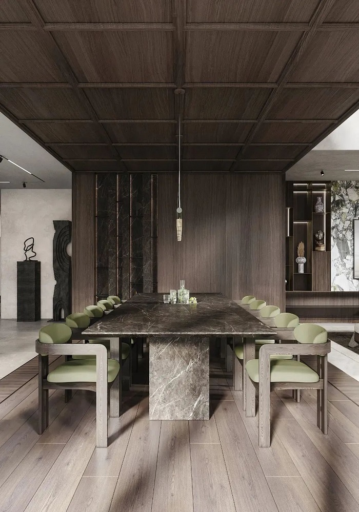 聯(lián)豐地板的灰色與留白相得益彰,寬闊的空間與形態(tài)各異的家居設(shè)計(jì),營(yíng)造視覺感官的層次品味。