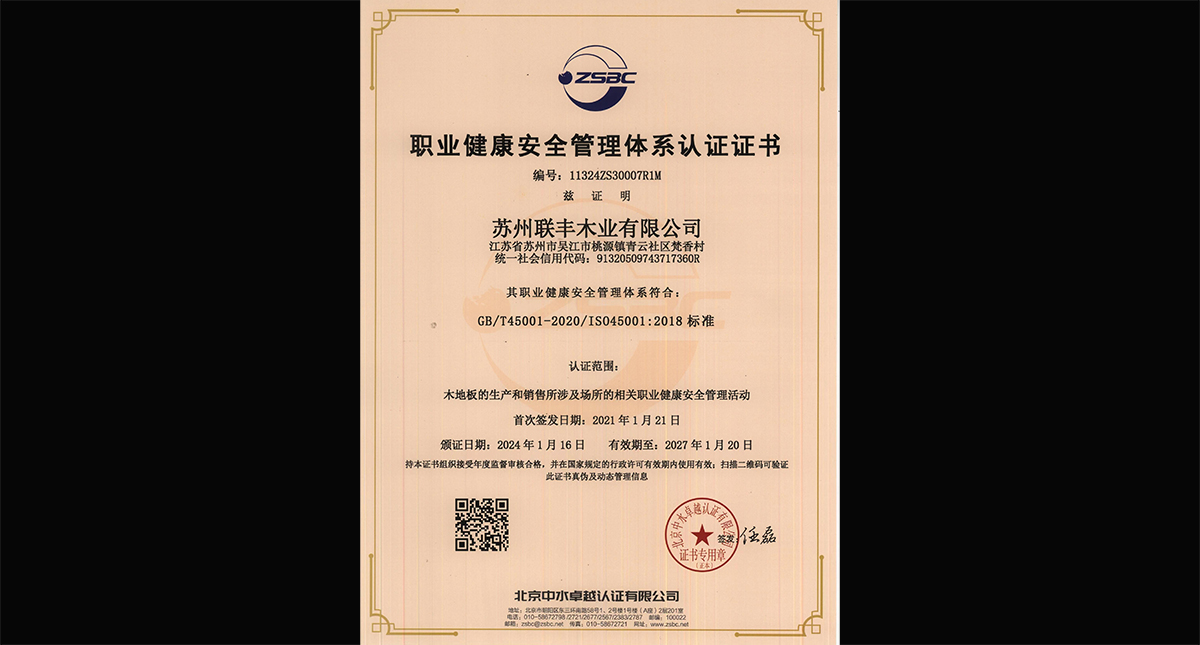 職業(yè)健康安全管理體系認(rèn)證證書(shū)