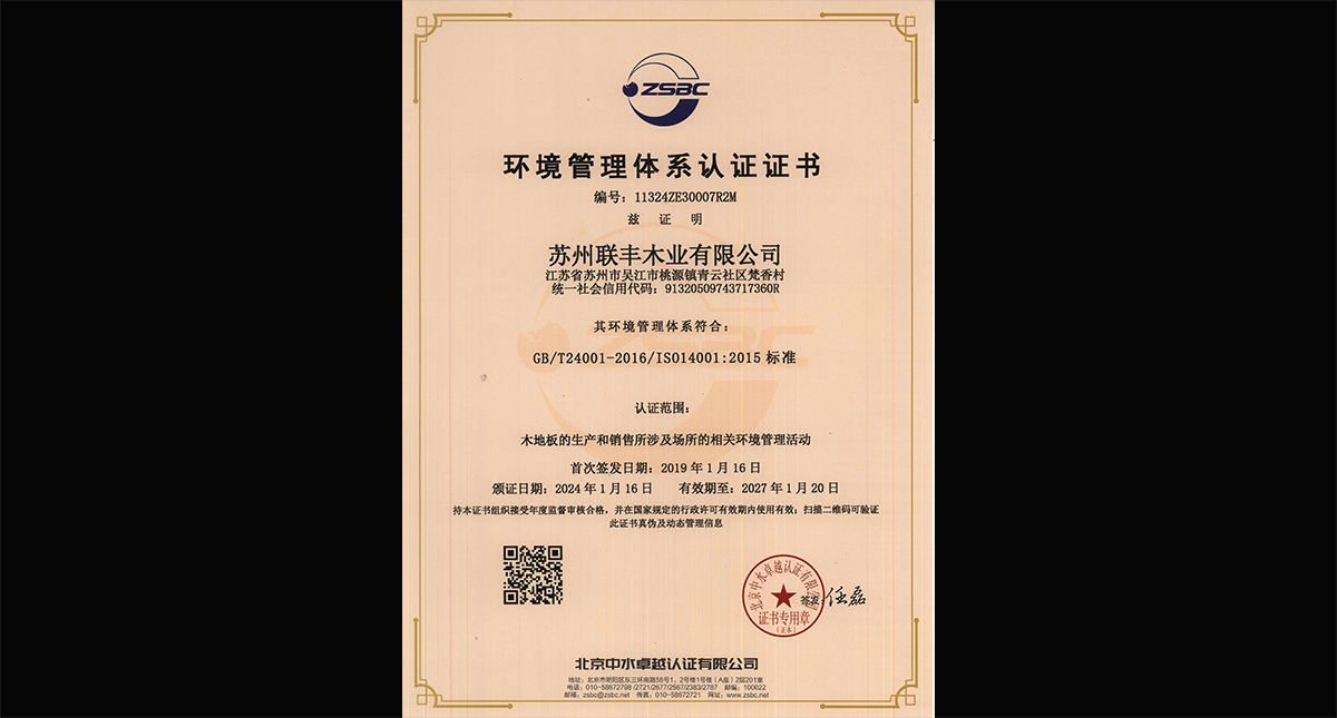 環(huán)境管理體系認(rèn)證證書(shū)